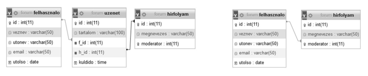 Az adatbázis a fórummal kapcsolatos következő táblákat tartalmazza: